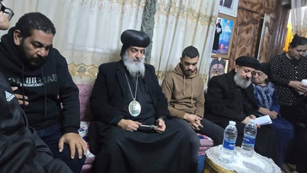الأنبا مقار يزور أسرة الشاب المتنيح توني مينا شكري بفاقوس لتقديم واجب العزاء
